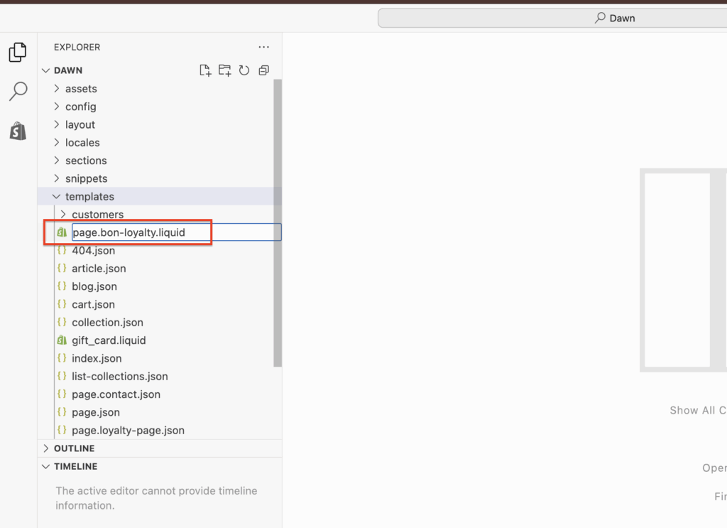 Name the page using the following format: page.name-of-the-page.liquid. For example: page.bon-loyalty.liquid.