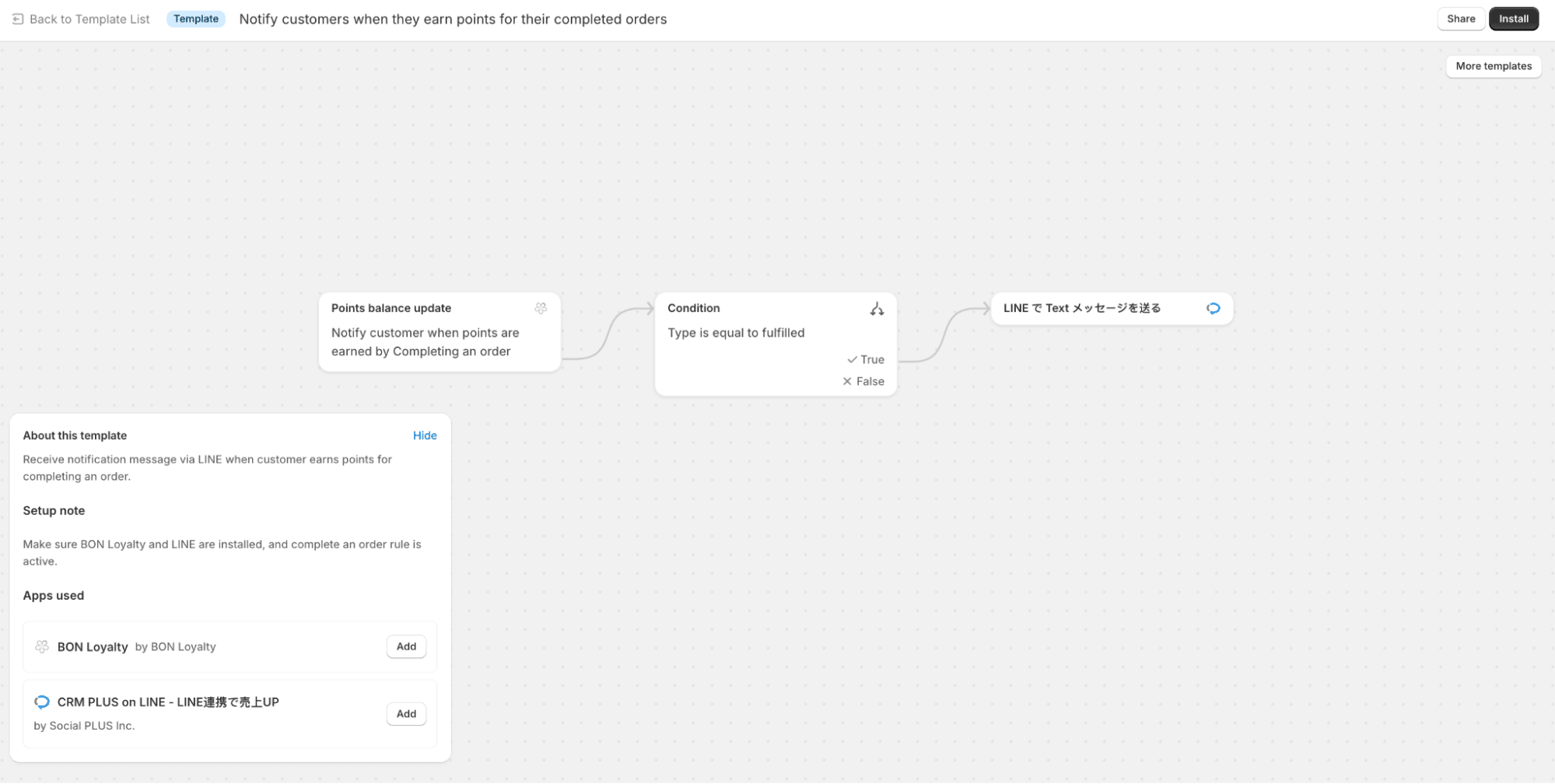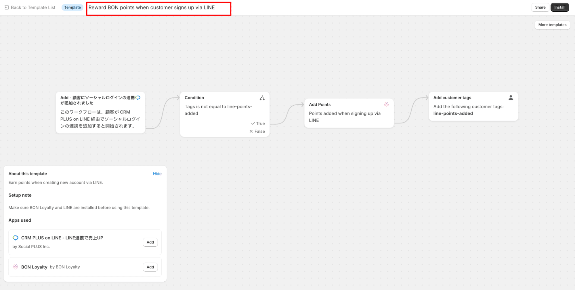 Select the template ‘Reward BON points when customers sign up via LINE’.