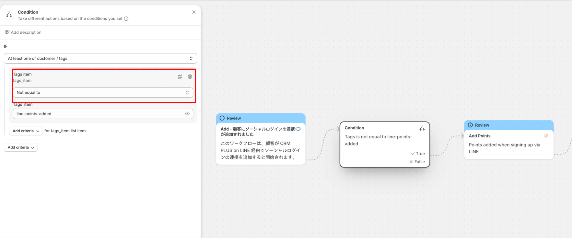 Condition: Check if customer tag line-points-added exists (Merchant can change the default tag line-point-add to their preference).