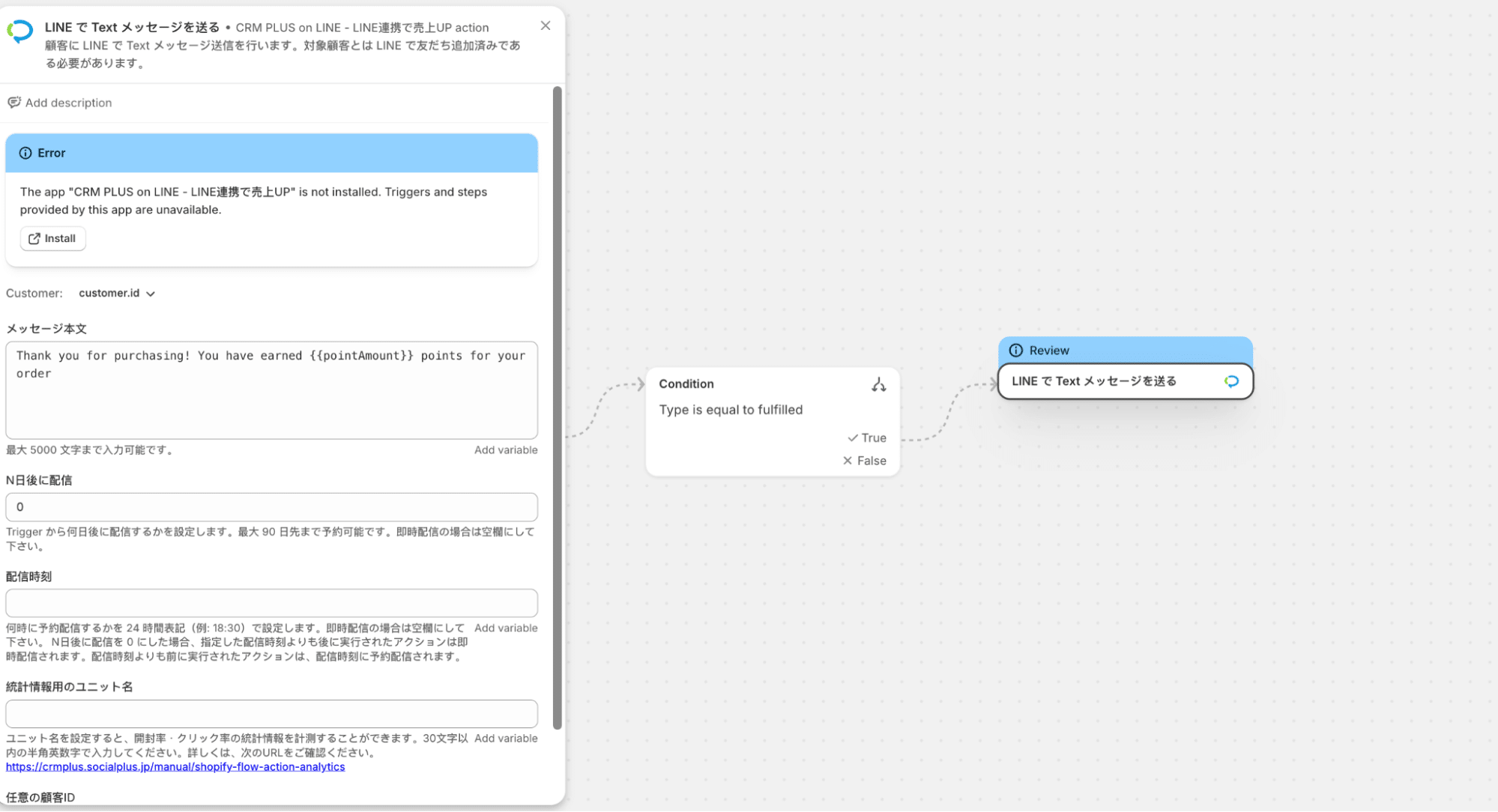 Trigger: “Add – 顧客にソーシャルログインの連携が追加されました (This will be in Japanese since it is a Japanese app). It means “Add – customers linked with social login”