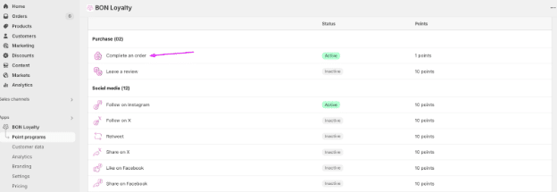 First, go to BON > Point programs > Set up in Earn points > Click on Leave a review rule.