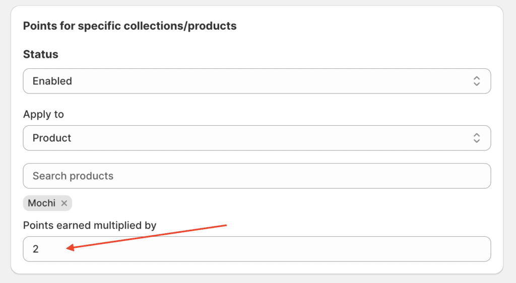 Note: Only the products and collections selected for Included items list are eligible for the point multiplier benefit.