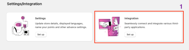 Step 1: To start your integration, go to Settings tab in BON Loyalty > Select ‘Set up’ for Integrations tab.