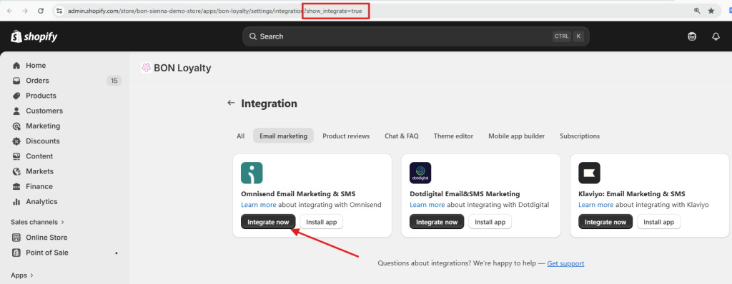 Step 4: To integrate, please input this attribute ‘?show_integrate=true’ in the URL to activate the ‘Integrate now’ button.