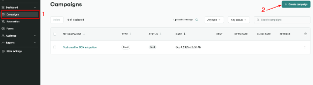 - To start, go to your Omnisend app > select Campaign > Create a campaign