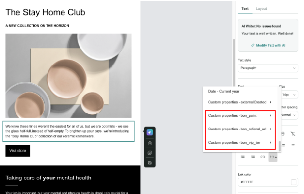 After the data in BON has been synced successfully, now you can use loyalty program data in your email campaign.