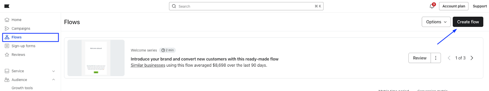 - From your Klaviyo account, go to Flows. Click Create flow > Build your own.