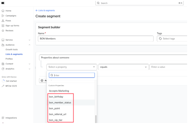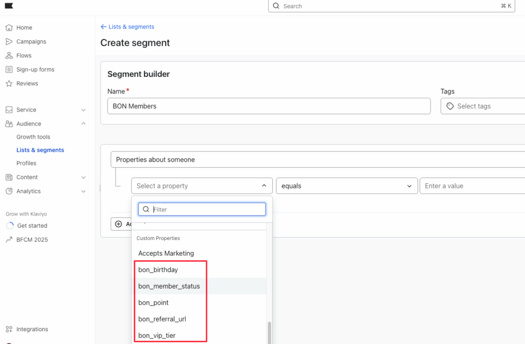 BON を Klaviyo と連携し、BON の属性を活用して Klaviyo でマーケティングキャンペーンを設定する方法