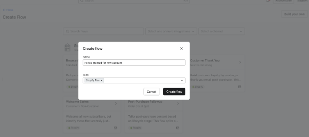 2. ポップアップで新しいフローの名前を入力します。必要に応じてタグを追加してフローを整理し、「Create flow」をクリックします。